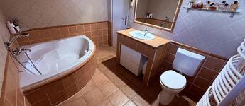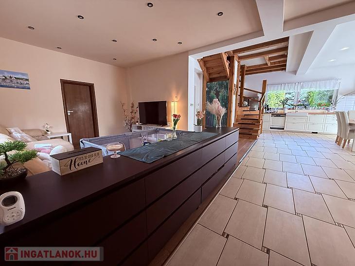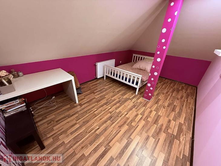 Az emeleten közlekedő és három külön nyiló szoba került kialakításra, így a ház ideális nagyobb család számára is. A fütést kondenzációs kazán biztosítja, a hidegburkolatos helyiségekben padlófűtéssel, míg a többi helyiségben radiátoros hőleadással. A 10 cm-es szigetelésnek köszönhetően a ház fenntartási költsége kedvező. A dél-nyugati fekvésnek köszönhetően a ház egész nap világos, napfényes.