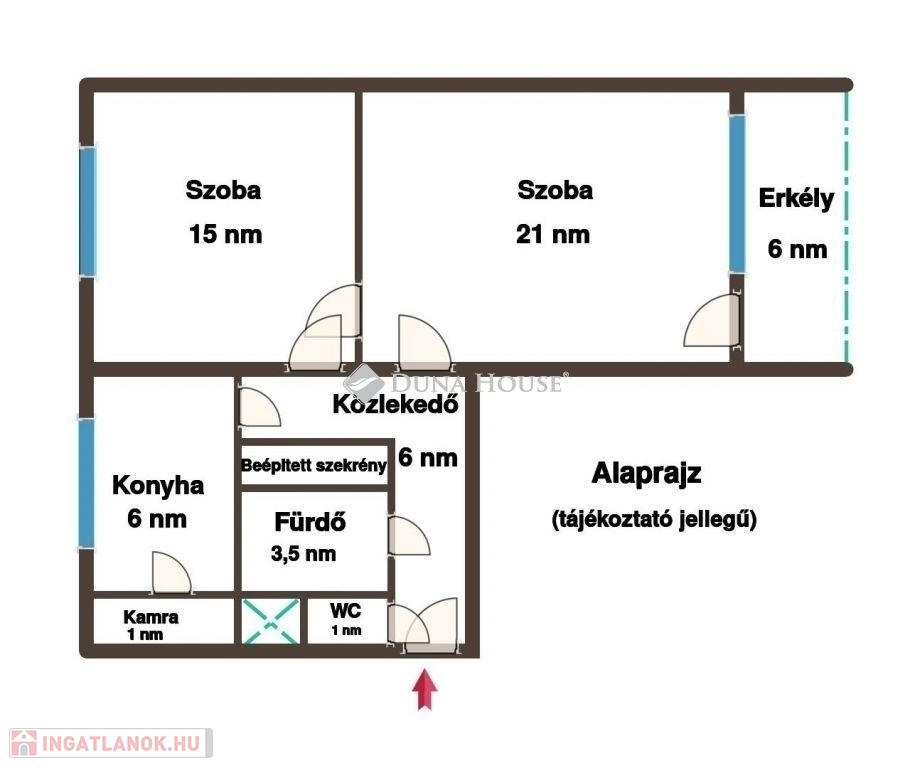 két szoba (21 és 15 nm)