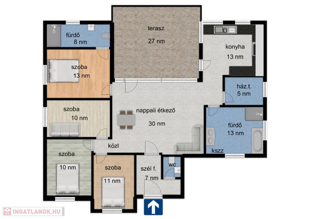 - 122 nm-es hasznos alapterület.